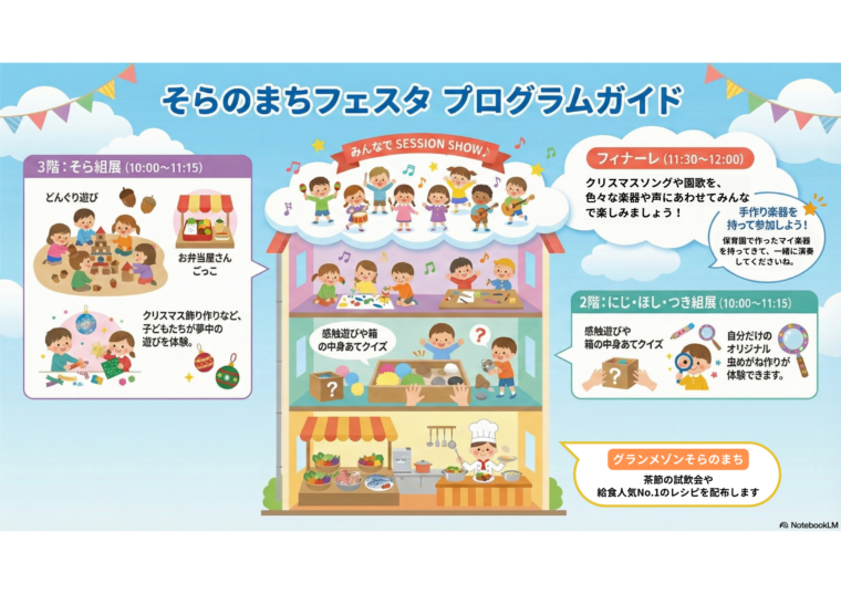 そらのまちほいくえんでは、子どもたちの育ちを保護者の皆さまへお伝えする場として「そらのまちフェスタ」を開催しました。